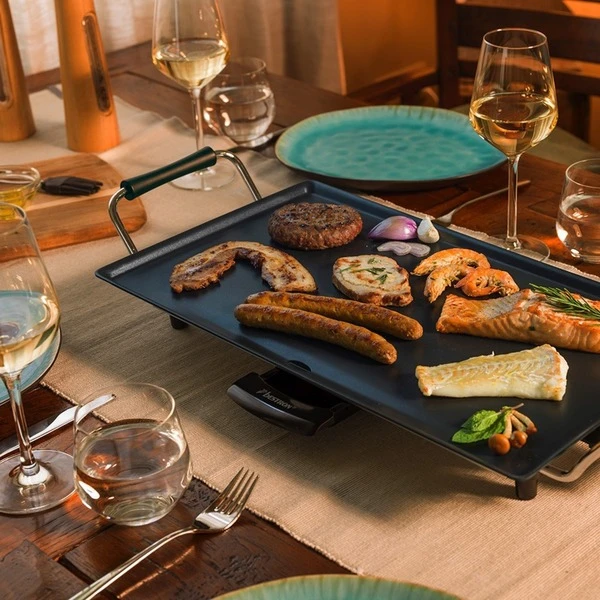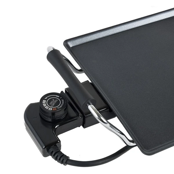 Die Bestron ABP602 Plancha Grillplatte ist eine hochwertige Backplatte mit Antihaftbeschichtung (Größe 47 x 26cm) und eignet sich ideal für z.B. Fleisch, Fisch, Gemüse und Kartoffeln. Der abnehmbare einstellbare Temperaturschalter besitzt eine Kontrollleuchte. Zum Betrieb ist kein Öl oder Fett notwendig, die Auffang-Rinne und -schale nimmt überschüssiges Fett oder Grillrückstände auf. Die ABP602 Plancha Grillplatte ist leicht zu reinigen und kann im Innenbereich und im Freien verwendet werden.Art.-Nr.: 1432123