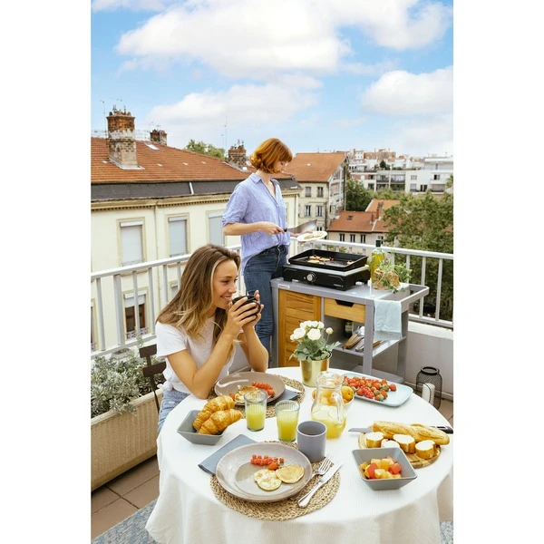 Es wird elektrisch! Plancha auspacken, Kabel einstecken und los geht’s mit dem Grillspaß! Die Plancha Electric 1 XD von Campingaz ist die ideale Lösung für das urbane Grillen. Ohne sperrige Gasflasche kann man mit ihr auf dem Balkon oder einer kleinen Terrasse leckere Mahlzeiten grillen. Die emaillierte gusseiserne Grillplatte sorgt für ein tolles Grillvergnügen und ist leicht in der Reinigung, sodass mehr Zeit für Familie und Freunde bleibt. Dank der voreingestellten Temperaturauswahl war es noch nie so einfach, für jedes Grillgut die richtige Gartemperatur zu erreichen und beizubehalten. Die Vielseitigkeit der neuen Plancha Electric 1 XD erlaubt es, egal wo und bei welchem Wetter zu grillen, im Garten, auf dem Campingplatz oder daheim, sogar drinnen in der Küche. Die Plancha Electric verfügt über einen spülmaschinenfesten, herausnehmbaren Fettauffangbecher, integrierte Griffe zum einfachen Tragen und Silikonfüße für einen rutschfesten Stand. Die mitgelieferte Abdeckhaube schützt die Plancha draußen vor dem Wetter.Art.-Nr.: 100024615