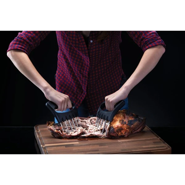Die multifunktionellen Tranchierkrallen 70043 von Napoleon sind ideal geeignet zum Zerkleinern von Pulled Pork und anderen zarten Fleischstücken. Dank der widerstandsfähigen, in ergonomischen Griffen eingebetteten Edelstahlgabeln sind diese Krallen ein wertvoller Küchenhelfer. Die Krallen können Fleisch zerkleinern oder große Braten zum Schneiden halten.Art.-Nr.: 1496654