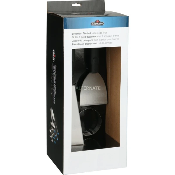 Ein Grill eignet sich nicht nur für herrliche Abendessen, sondern auch zur Zubereitung von Gourmet-Frühstücken. Das Frühstücksset 70055 von Napoleon enthält einen praktischen Grillwender, einen Schaber zum Sauberkratzen von Grillplatten und Planchas und vier Eierringe mit klappbaren Griffen für perfekt runde Spiegeleier.Art.-Nr.: 1591746