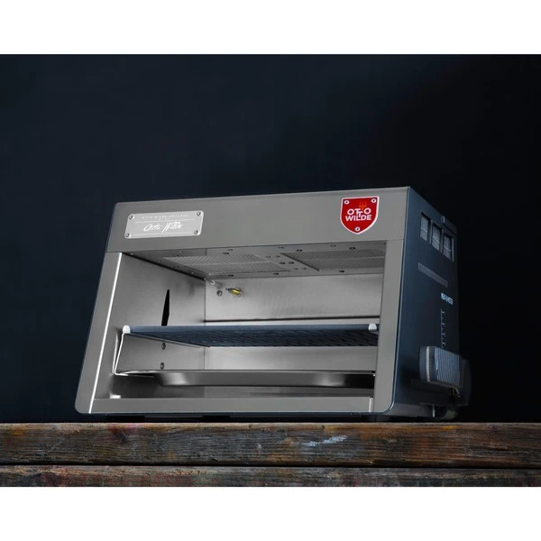 O.F.B. wurde von Otto Wilde Grillers entwickelt, weil eine knackige Kruste und saftiges Fleisch kein Zufall sind, sondern das Ergebnis extremer Grilltemperatur von bis zu 900°C. Bei herkömmlichen Grills kann das Steak eine flaue Kruste und einen trockenen Kern haben, wegen niedriger Grilltemperaturen und einer zu langen Grilldauer. Der O.F.B. Original verfügt über zwei Brenner, die in nur 3 Minuten bis zu 900°C erreichen, das verleiht den Steaks eine perfekte Kruste, während das Fleisch innen zart und saftig bleibt. Durch die hohen Temperaturen kommt es zur sogenannten Maillard-Reaktion. Sie ist für die schöne Kruste und den Grillgeschmack verantwortlich. Die Röststoffe verleihen dem Grillgut das typische “Brutzelaroma” und intensivieren den Fleischgeschmack. Bei herkömmlichen Grills tropfen Fett und Fleischsäfte außerdem in die Hitzequelle, was Flammen und Fettbrände verursacht und die die gleichmäßige Hitzeverteilung stört. Verkohlte oder ungleichmäßig gegarte Speisen können die Folge sein. Durch die Oberhitze bei O.F.B. entsteht eine gleichmäßige Kruste, und das Fett tropft in die Auffangschale darunter. Die zwei Infrarot-Brenner sind stufenlos und individuell regelbar. Die offene Front ermöglicht nicht nur einen einfachen Zugang zum Grillgut, man kann auch die Steaks immer im Blick behalten. Wenn man mit 900 Grad grillt, muss das Einstellen der Rosthöhe zuverlässig funktionieren. Mit dem seitlichen Hebel ist die stufenlose Höhenverstellung des Rostes kinderleicht und durch den verstellbaren Widerstand auch besonders sanft und sicher. Der speziell für den Otto Wilde Grillers O.F.B. entwickelte Gusseisen-Grillrost speichert die Hitze optimal, erfordert nur minimalen Pflegeaufwand und ist groß genug, um selbst die größten Porterhouse-Steaks zu grillen. Ob Picknick oder Camping-Urlaub, O.F.B. lässt sich durch seine Kompaktheit außerdem überall hin mitnehmen.Art.-Nr.: 1629746