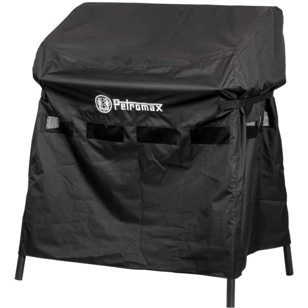 Die Abdeckhaube px-cover90 von Petromax ist eine robuste Hülle für den Petromax Gastisch ge90 oder den Feuertopf Tisch fe90. Nach einem Abend am Camper mit Feuertopf-Gulasch und kräftiger Zwiebelsuppe ist die Hülle griffbereit, um sie nach der Reinigung schnell überwerfen zu können und den Tisch geschützt aufzubewahren. Vor Staub und Schmutz bewahrt, lagert der Feuertisch nach dem Draußen-Kocherlebnis unter der Schutzhülle aus reißfestem Ripstop-Gewebe. Die integrierten Lüftungsöffnungen verhindern dabei, dass sich unter der Abdeckung Staunässe bildet. Egal, ob der Windschutz aufgeschraubt ist oder nicht, in beiden Fällen kann die passende Hülle einfach über den Tisch gezogen werden. Mehrere Klettverschlüsse sorgen für einen starken Halt in der richtigen Position. Damit die Abdeckhaube nicht verrutscht, kann sie an den Bändern festgezogen werden. Bei Bedarf die Schutzhülle mit Spülmittel und einem feuchten Tuch gesäubert werden. So befinden sich der Gastisch und der Feuertopf Tisch unter der schwarzen Hülle mit dem Petromax-Logo in guten Händen und sind stets für ihren nächsten Einsatz beim Grill-Abenteuer bereit.Art.-Nr.: 1905388