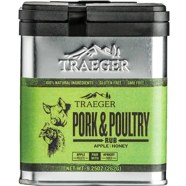 Beim Traeger Pork & Poultry Rub tun sich Apfel- und Honiggeschmack zusammen, um sicherzustellen, dass alle Hähnchen- und Schweinefleischkreationen richtig lecker werden. Passt hervorragend zur Traeger Apricot BBQ Sauce und den Traeger Apfel Pellets.Art.-Nr.: 1584032
