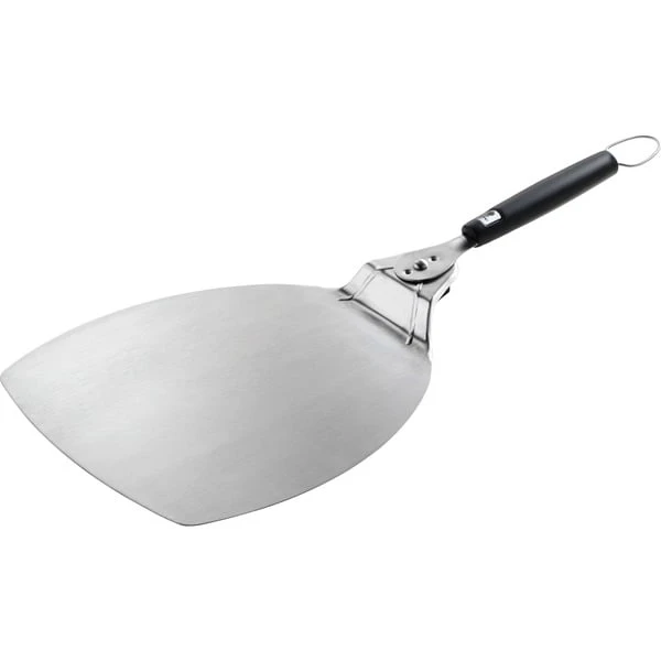 Der robuste Weber Pizzaheber 6691 ist aus Edelstahl gefertigt und hält auch dem Gewicht einer dick belegten 30cm Pizza vom Grill stand. Gleichzeitig sorgt der weiche, rutschfeste Griff aus schwarzem Gummi dafür, dass man stets die volle Kontrolle hat. Auch als Schneidunterlage ist er geeignet. Wenn der Pizzaheber nicht mehr benötigt wird, kann der Griff platzsparend nach innen gedreht werden, oder man hängt den Heber an seiner Öse auf. Art.-Nr.: 1255188